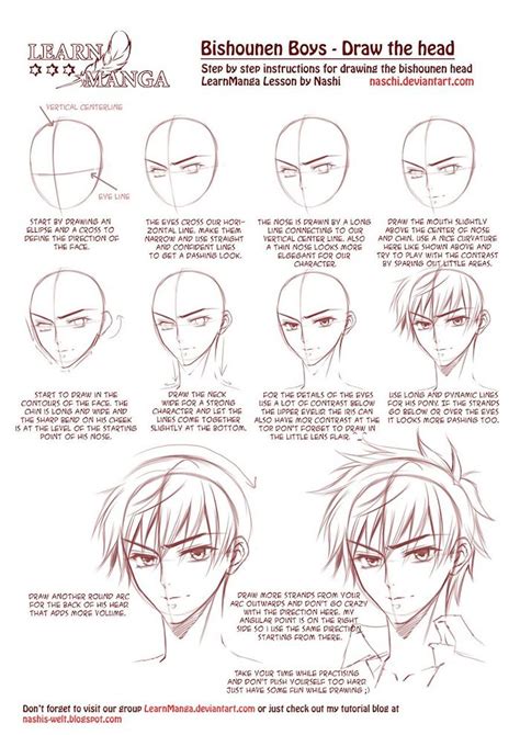 If you like these types of tutorials with easy to follow examples and detailed explanations you can also try some of the following:This step by step tutorial shows how to draw an anime or manga male head and face from the front and side views.